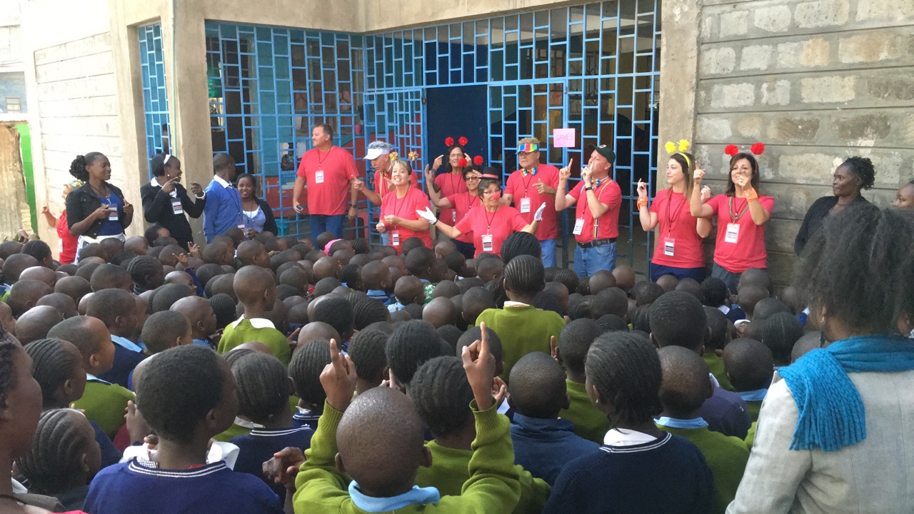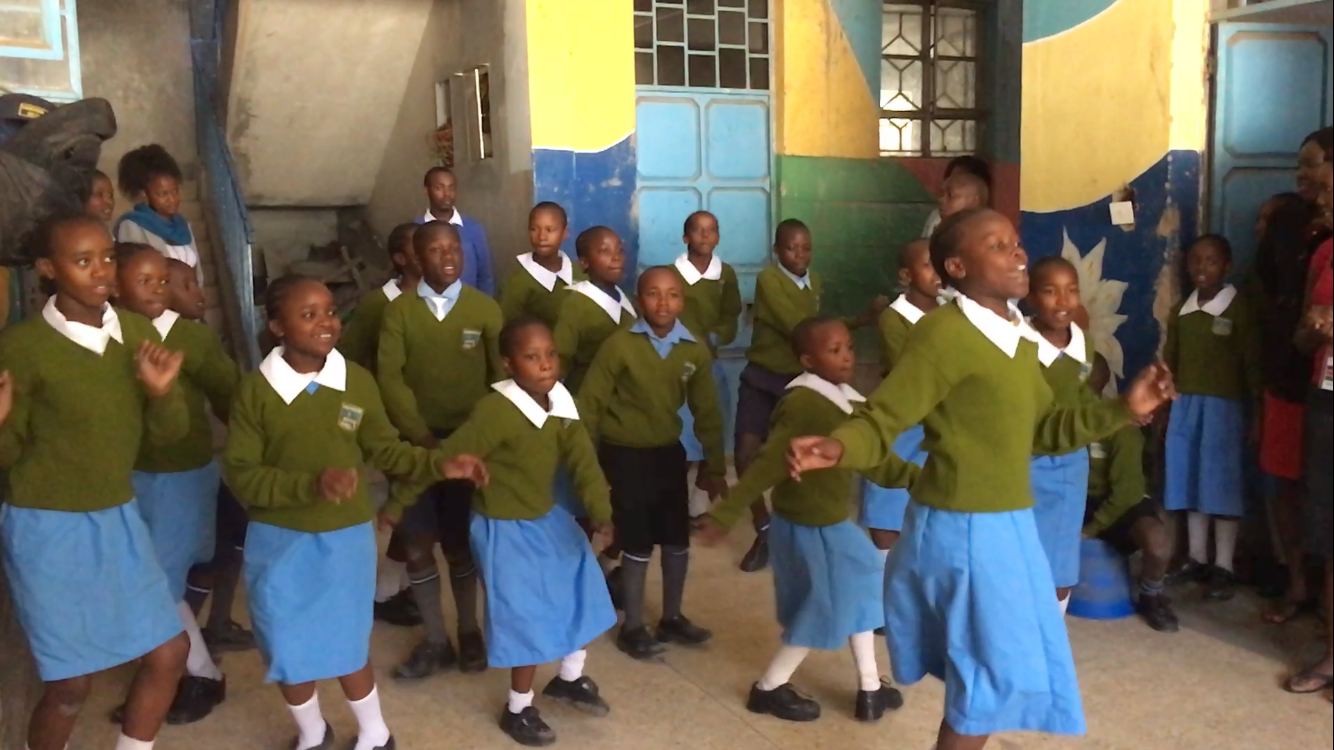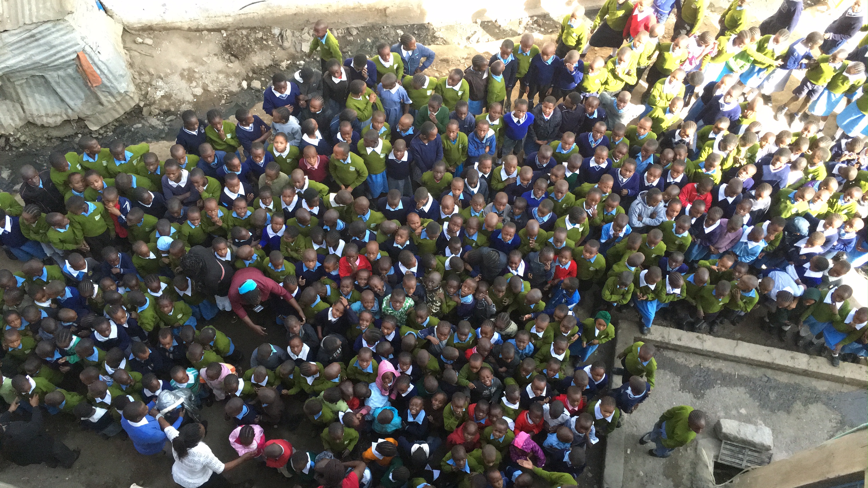 Here’s a birdseye view of over 500 children in a very, very small space for our short opening before we split them into their classes.